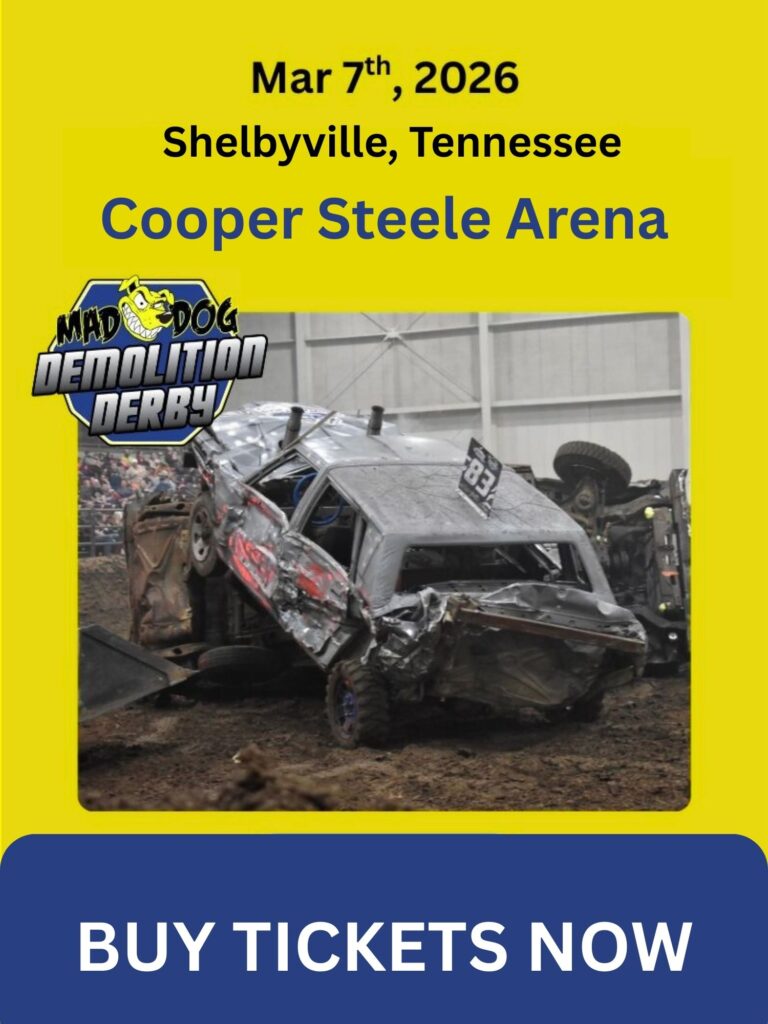 The Mad Dog Demolition Derby is coming to Lebanon Missouri this April 6th in the Cowan Civic Center with 3 classes of cars including Semi Stock Full Size, Compacts, and Hobo Full Size. This is an action packed event you wont wanna miss. Get tickets now using www.motorheadevents.com to save $5